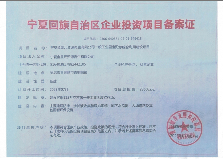 寧夏金昱元資源再生有限公司一般工業(yè)固廢貯存綜合利用建設(shè)項(xiàng)目環(huán)境影響報(bào)告書(shū)公眾參與初次公示