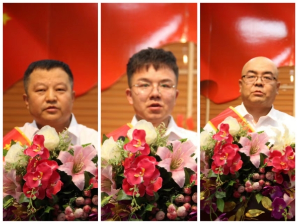 勞動模范:左:資源循環公司 席文童;中:廣拓能源公司 麻玉龍;右:炔烴節能公司 金學鋒